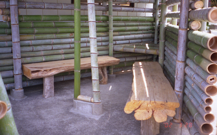 近くの山の竹を切り出し、屋根、柱、壁など全て竹の組み合わせで造られています。
