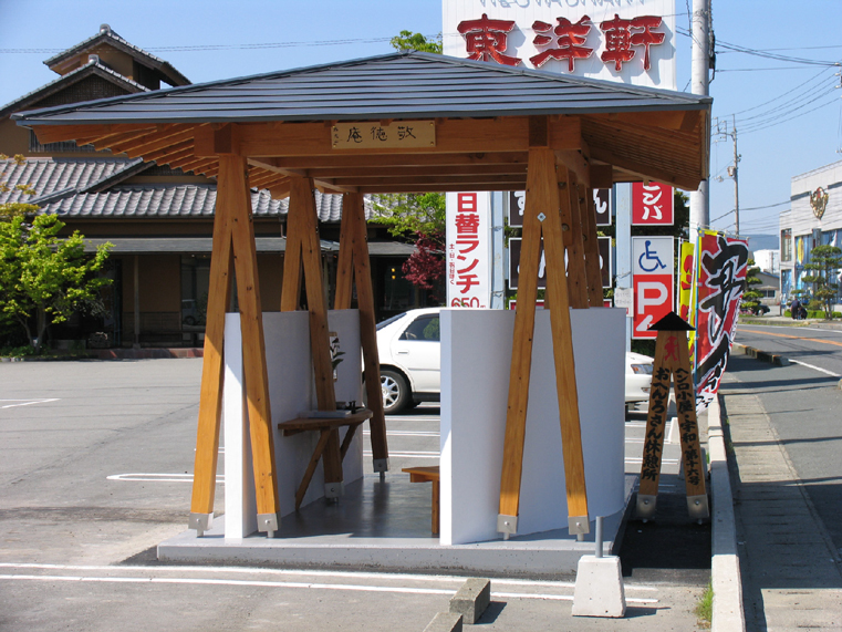 レストランの駐車場に建つ、愛媛第1号の小屋。